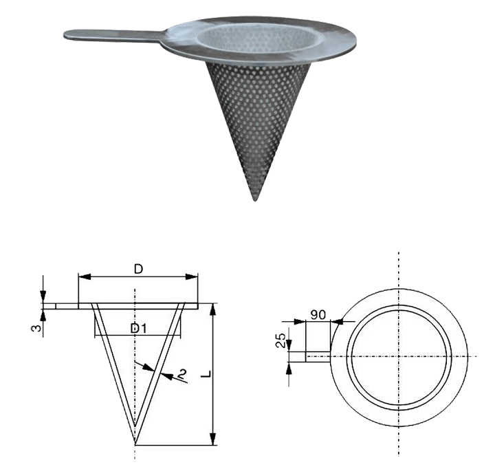 臨時過濾器又稱錐型過濾器,屬于管道粗過濾器系列簡單過濾器形式,安裝在管道上能除去流體中的較大固體雜質,使機器設備(包括壓縮機、泵等)、儀表能正常工作和運轉,達到穩定工藝過程,保障安全生產的作用。當流體進入置有規格濾網的濾筒后,其雜質被阻擋,而清潔的濾液則由過濾器出口排出,當需要清洗時,只要將可拆卸的濾筒取出,處理后重新裝入即可,因此,使用維護方便。